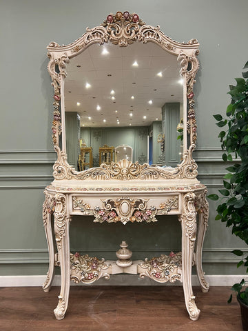 Agatha Baroque Rococo French Vintage Console Table & Mirror Cream - Hallway