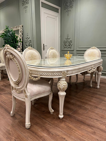 "The Cream & Gold 4 Chair Ornate Dining Table Set really elevates my dining room. It’s elegant but still comfortable for family meals." "The Cream & Gold 4 Chair Ornate Dining Table Set really elevates my dining room. It’s elegant but still comfortable... "The Cream & Gold 4 Chair Ornate Dining Table Set really elevates my dining room. It’s elegant but still comfortable for family meals."